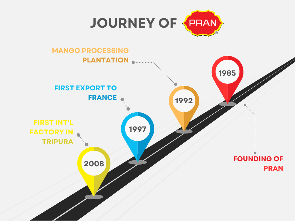 Later in 1986, PRAN extended its operations by entering into agriculture through contract farming, and in 1992, with its food processing plant in Ghorashal, PRAN further established its position in the industry.