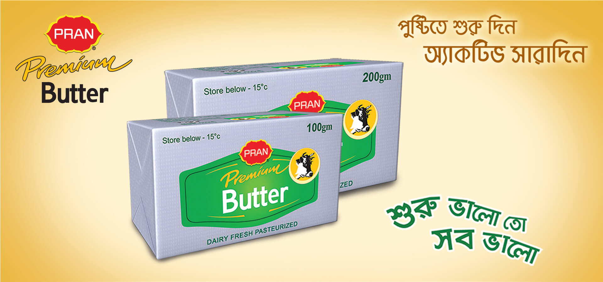 PRAN Premium Butter is available in 100, 200 gm foil paper packaging. Its is also available in 200 gm Box.