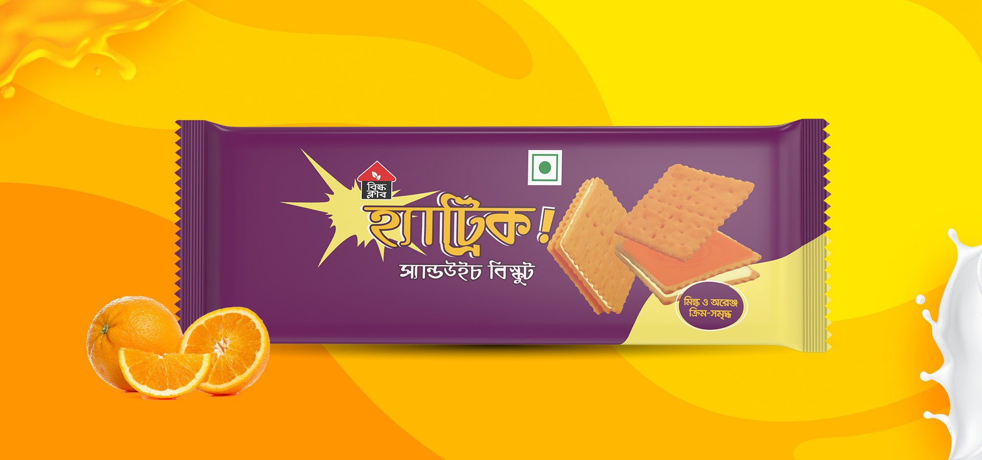 Double Sandwich biscuit with orange and milk cream inside which is very first time in Bangladesh