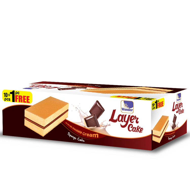 Chocolate flavored layered cake with the goodness of rich cream filling.