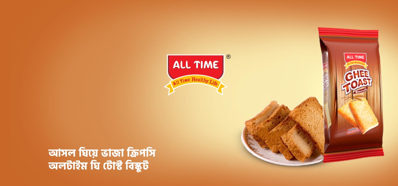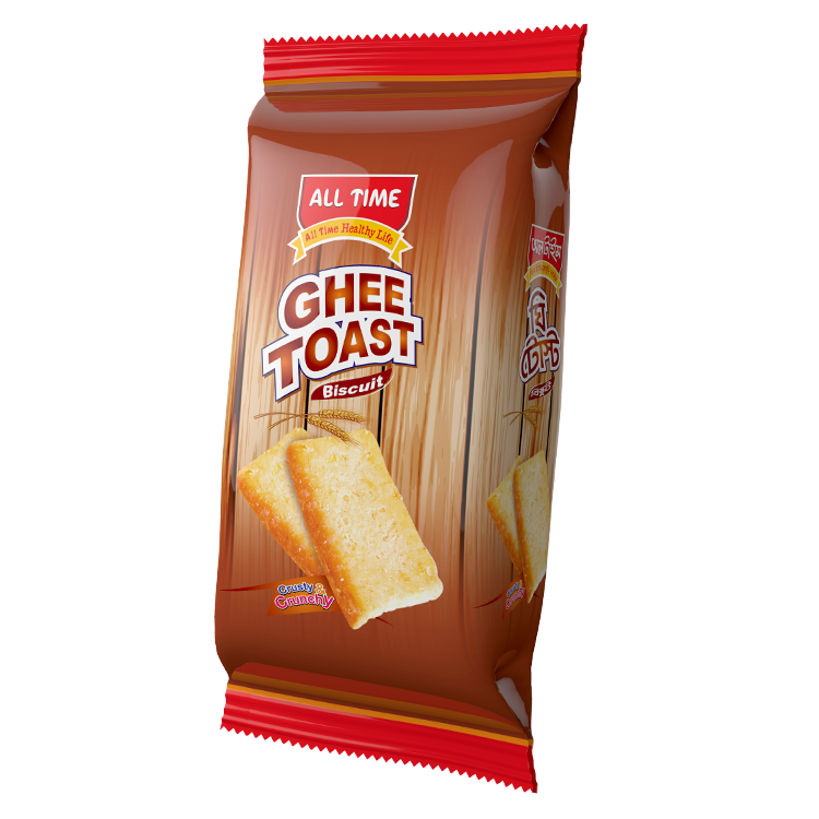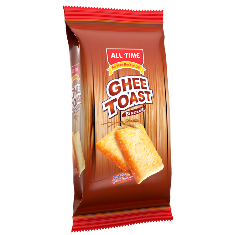 All Time Ghee Toast is a fluffy, crunchy toast biscuit coated with light sugar, great for a quick snack.
