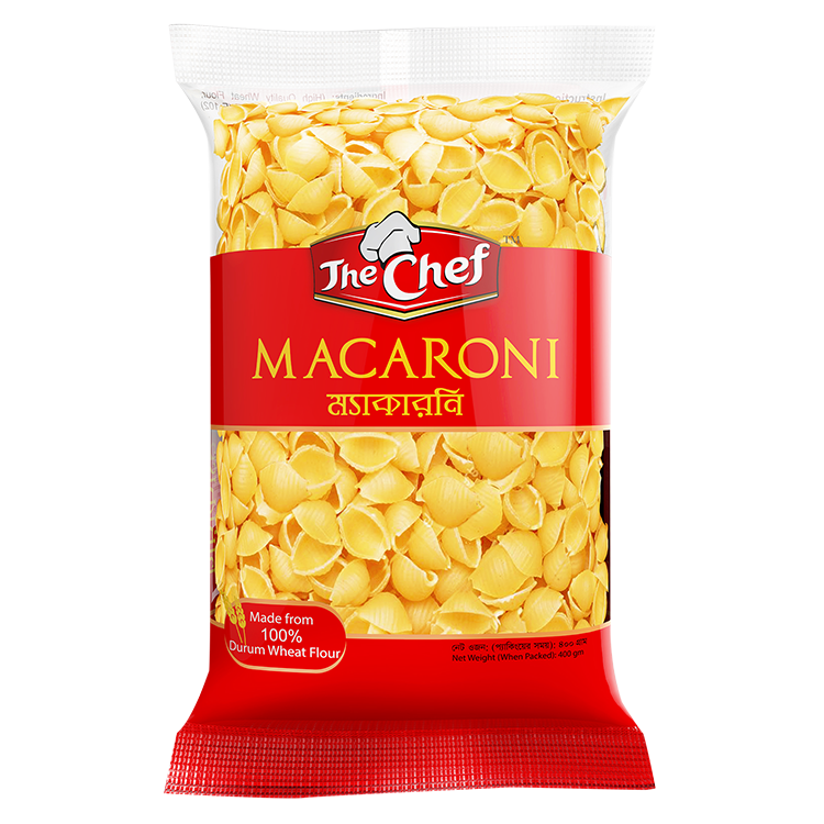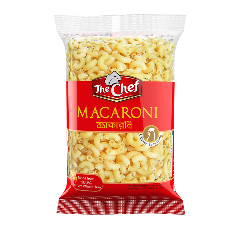 The Chef Macaroni is a range of delicious chicken flavored macaroni and comes in three different shapes.