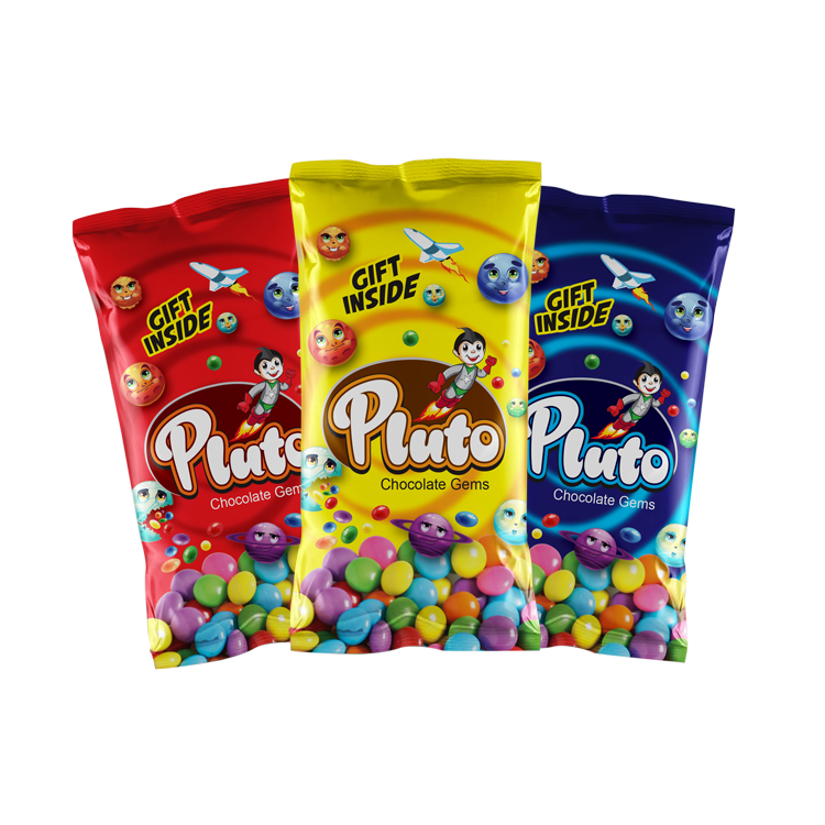 Pluto Chocolate Gems is created to fulfil the playfullness and active joys of chocolates for kids