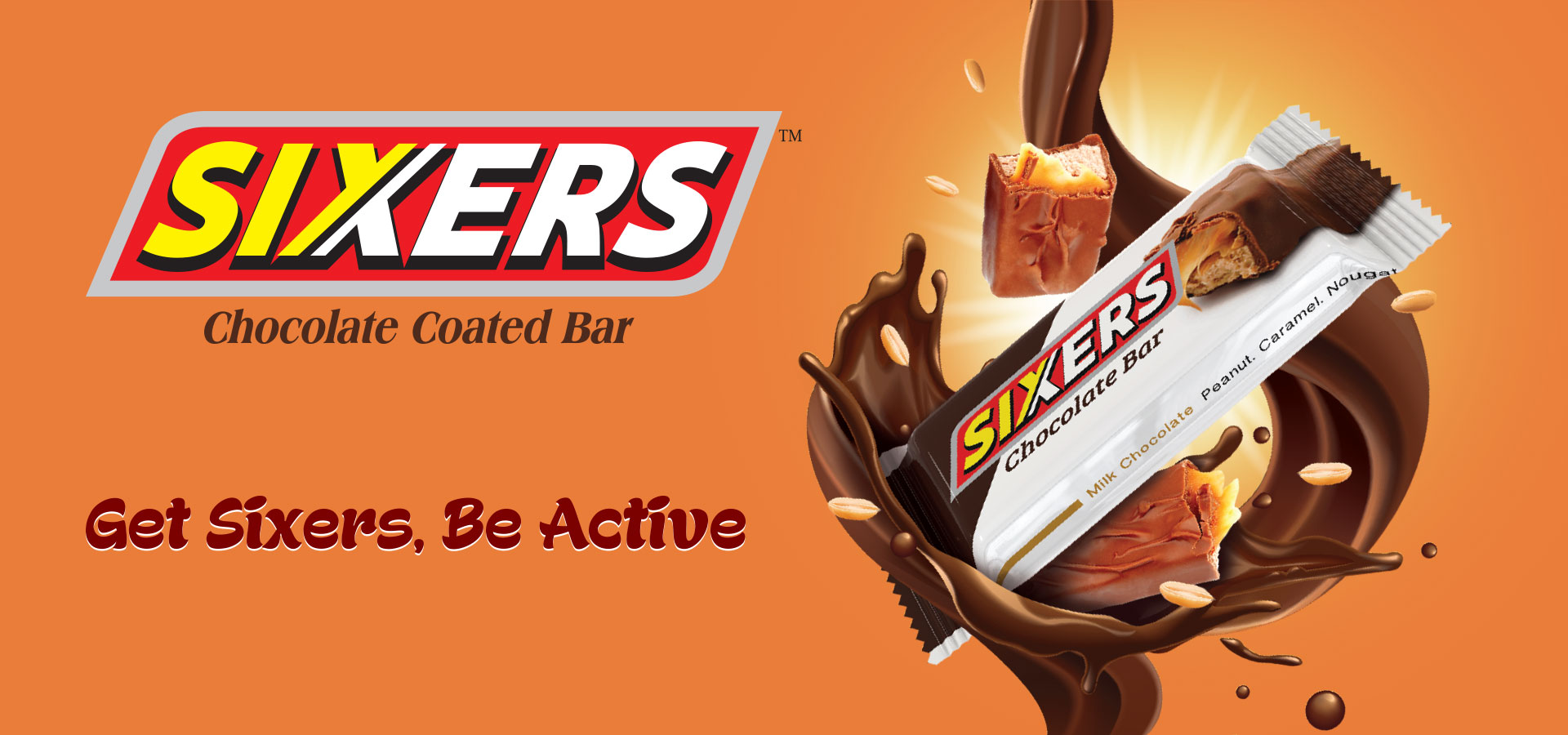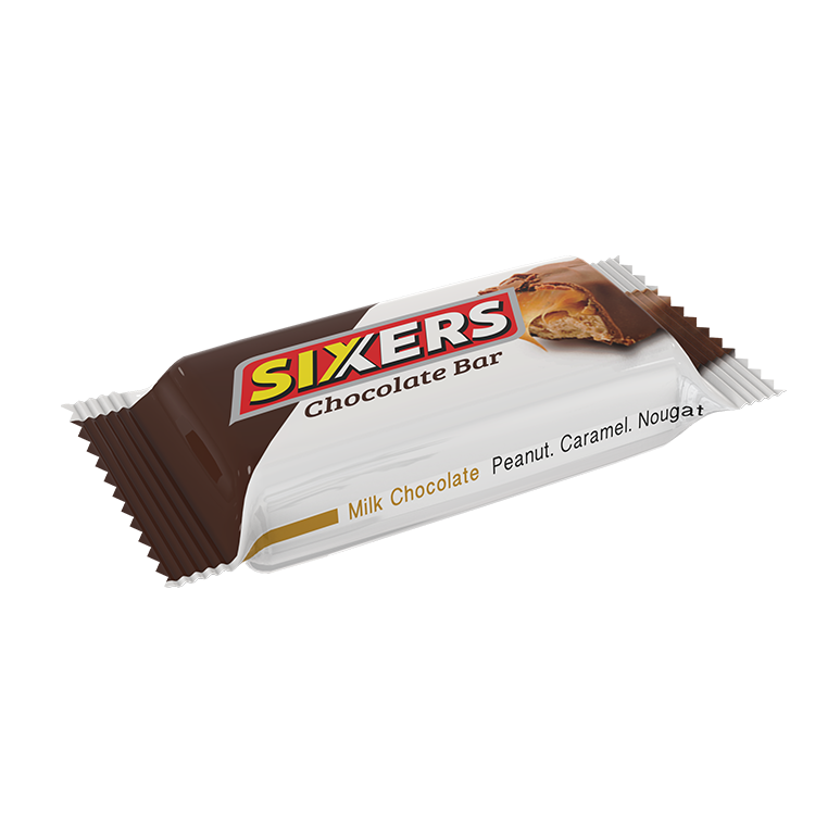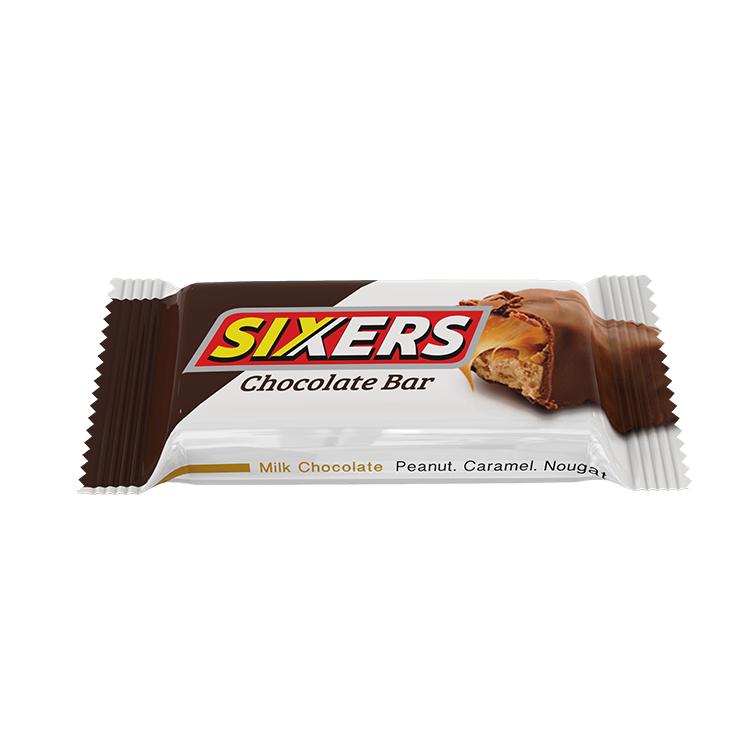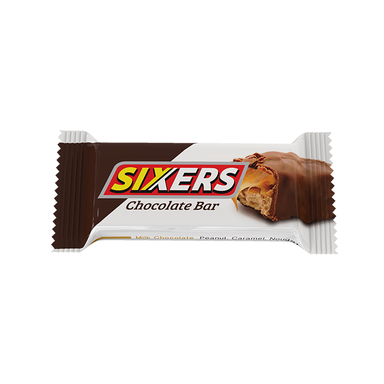 Sixers is a brand name chocolate bar made by PRAN Dairy ltd, consisting of nougat topped with caramel and peanuts that has been enrobed in milk chocolate.
